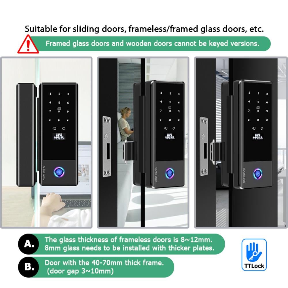 ودّع المفاتيح التقليدية، وجرب سهولة الدخول الذكي مع قفل الزجاج الذكي المزود بتقنية TTLock. تحكم ببابك بكل سهولة من جوالك، ببصمتك، أو حتى بكرت RFID – كل الطرق بين يديك